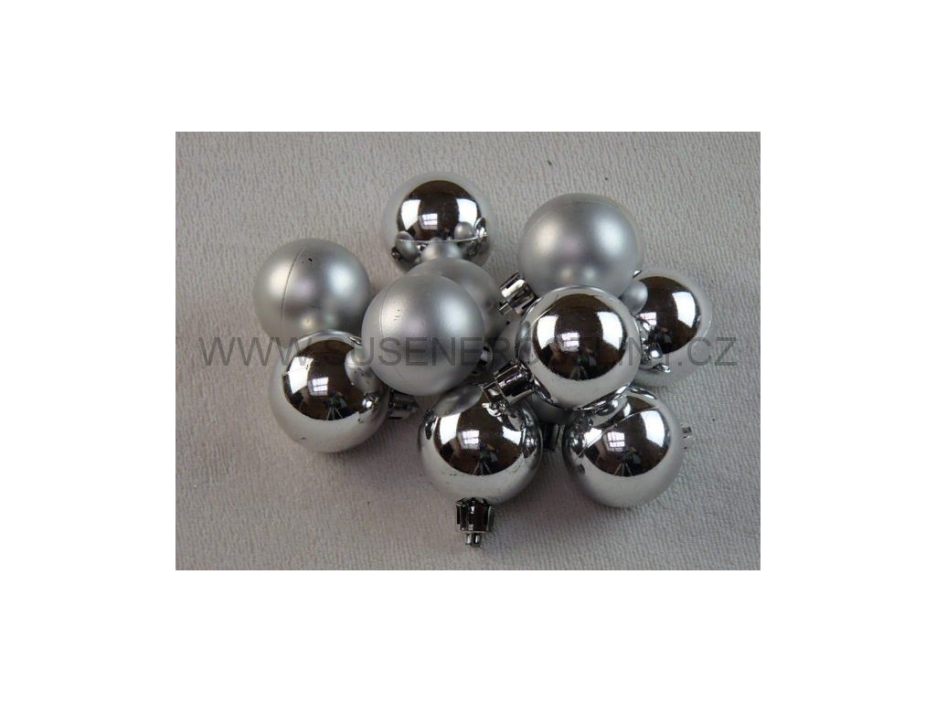 baňky plastové 4cm stříbrné, 12ks v balení