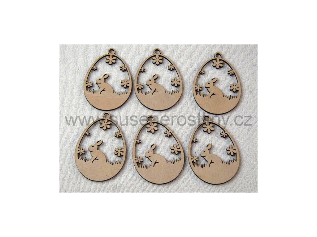 dřevěná dekorace zajíc, vzor č. 2, cena za 6 ks