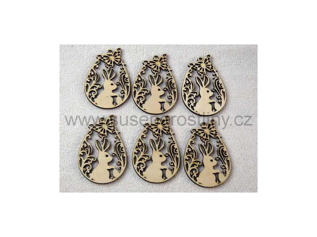 dřevěná dekorace zajíc, vzor č. 3, cena za 6 ks
