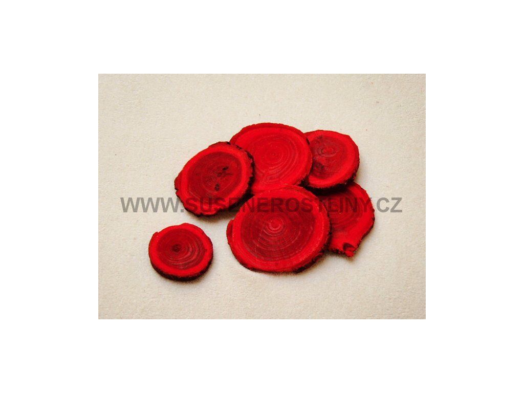 Dřevěné plátky červené, cena za cca 250 g