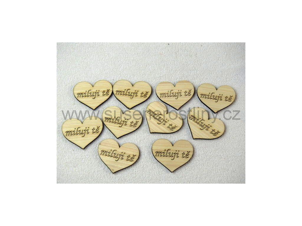 dřevěné srdce "miluji tě", cena za 10 ks