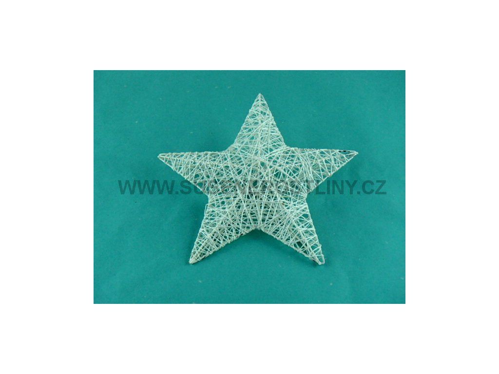 Hvězda s drátěnou konstrukcí omotaná bílou nitkou se třpytkami. Vhodné na dekorační vánoční výzdobu interiéru, dekoraci vánočního stromku. Dokonale navodí vánoční atmosféru.