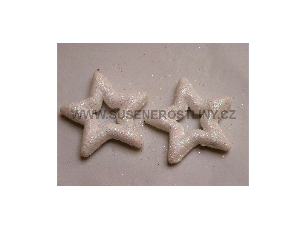 Hvězda glitter 7cm bílá, cena za 24ks