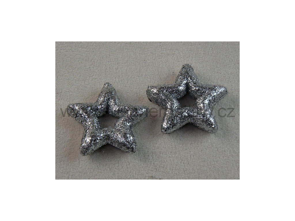Hvězda glitter 7cm stříbrná, cena za 24ks