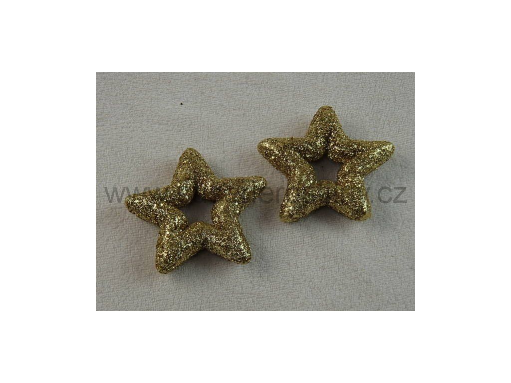 Hvězda glitter 7cm zlatá, cena za 24ks