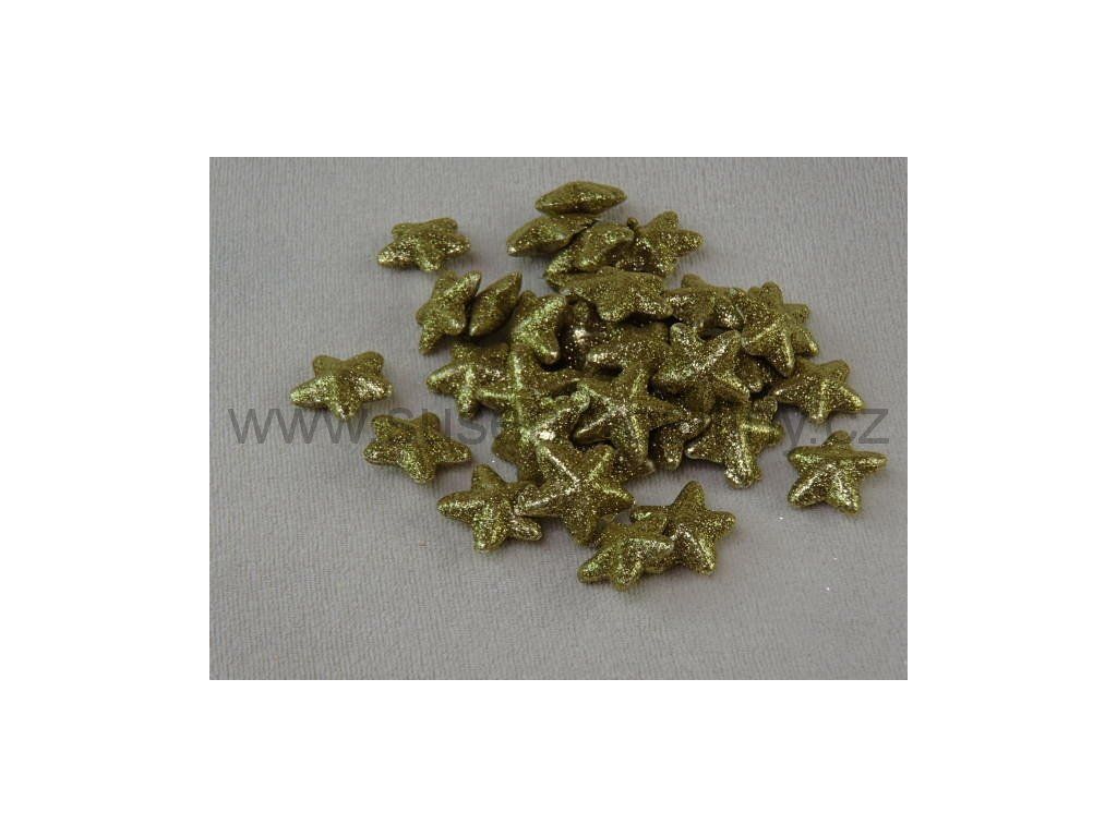 hvězda glitter zlatá 3cm, v balení cca 48ks