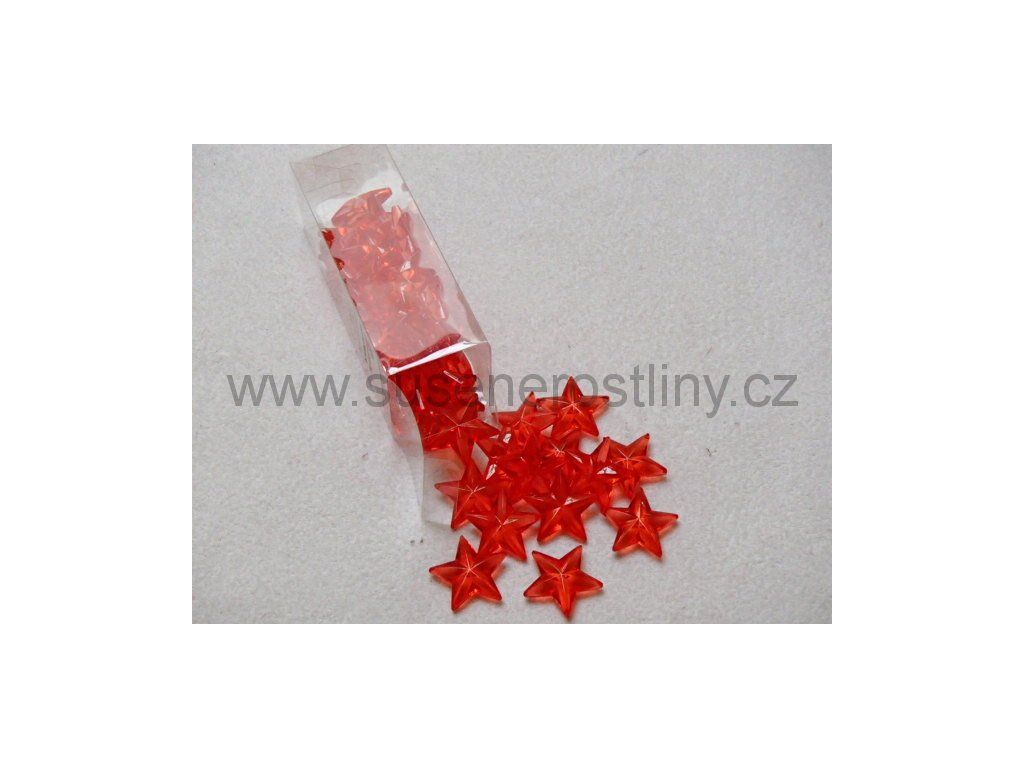 hvězda plastová oranžová tmavá, velikost 3,5 cm, cena za cca 145 g (cca 40 ks)