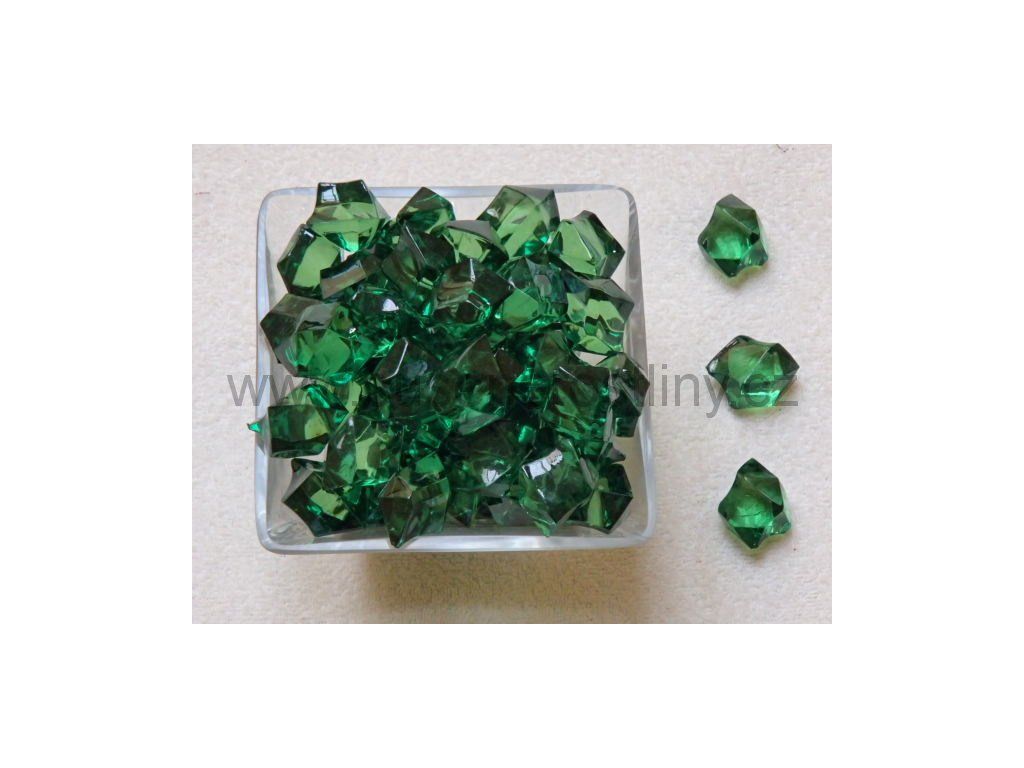 kameny plastové zelené tmavé, velikost 2 - 2,5 cm, cena za cca 240 g (cca 70 ks)