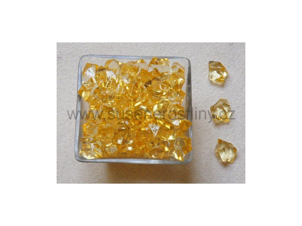 kameny plastové žluté, velikost 2 - 2,5 cm, cena za cca 240 g (cca 70 ks)