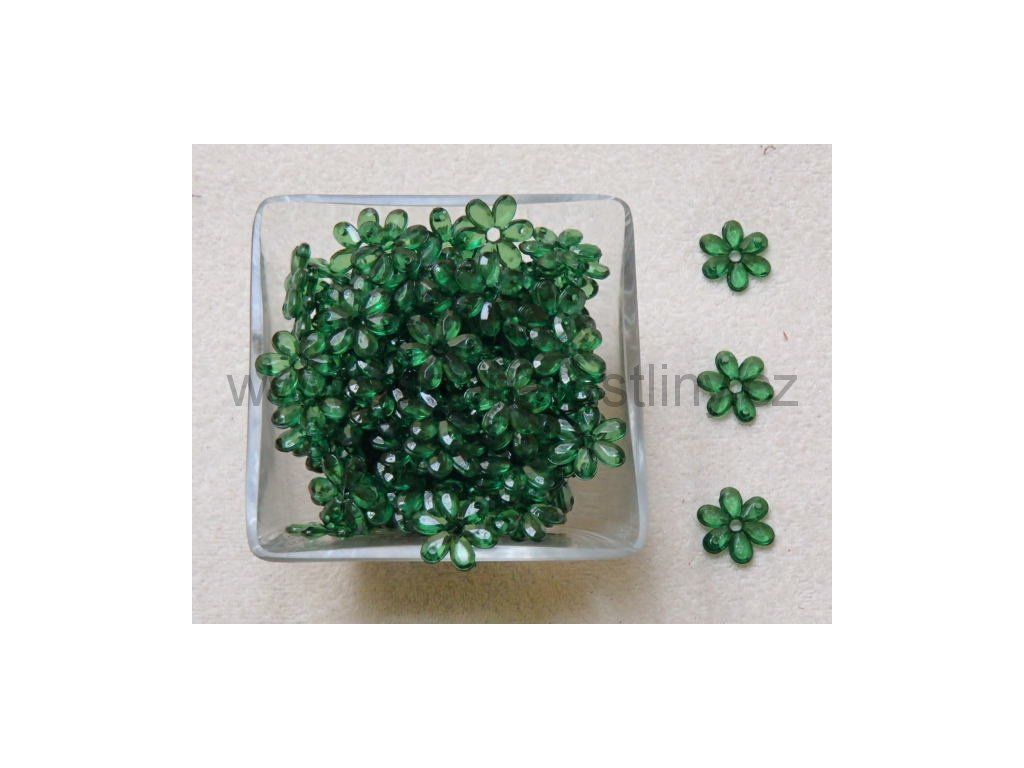 kytka plastová zelená tmavá, velikost 2 cm, cena za cca 150g (cca 220 ks)