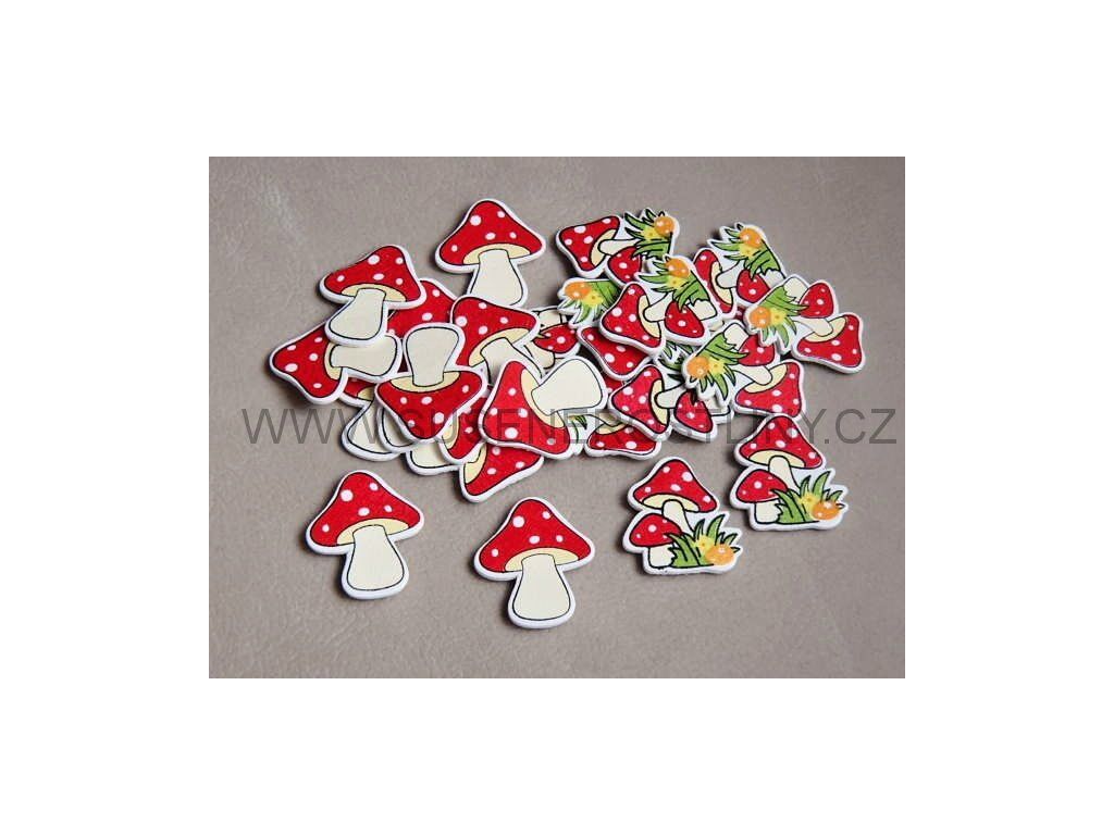 v balení: 12ks muchomůrka výška 4cm, šířka klobouku 3,2cm a 12ks 2 muchomůrky výška 3,5cm, šířka 3cm