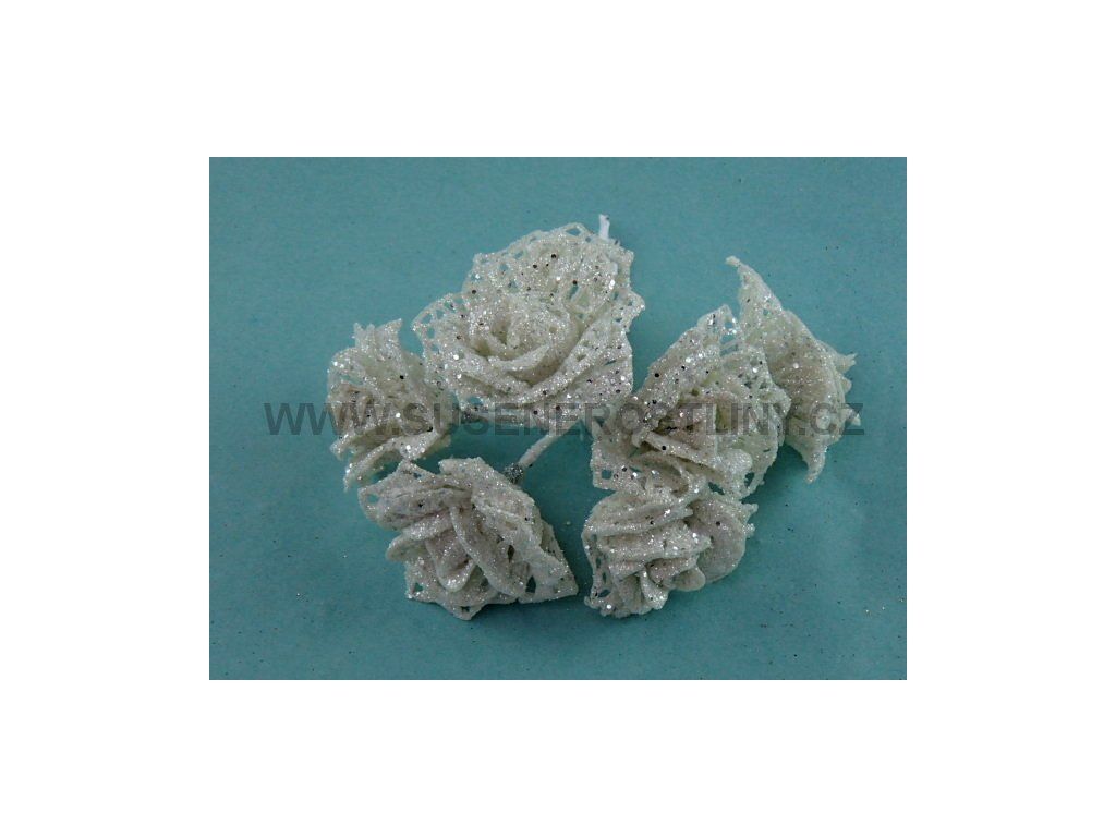 růže glitter 5cm na drátku bílá, v balení 12ks