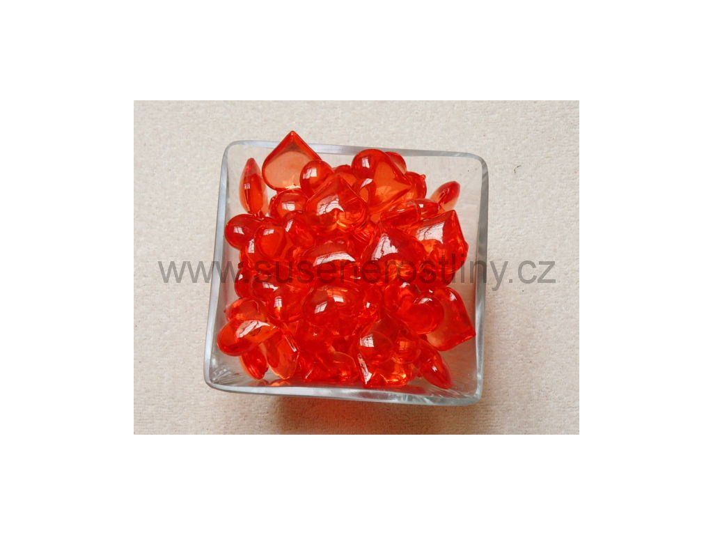 srdce plastové oranžové tmavé, velikost 2x2,5 cm, cena za cca 230 g (cca 80 ks)