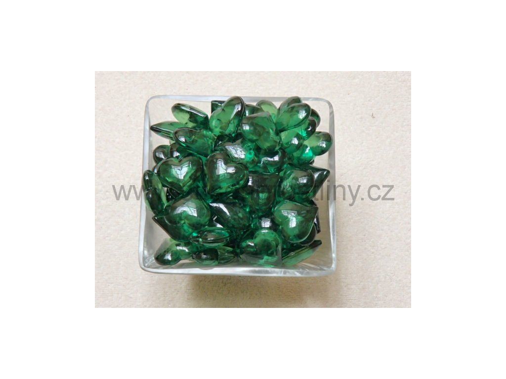 srdce plastové zelené tmavé, velikost 2x2,5 cm, cena za cca 230 g (cca 80 ks)