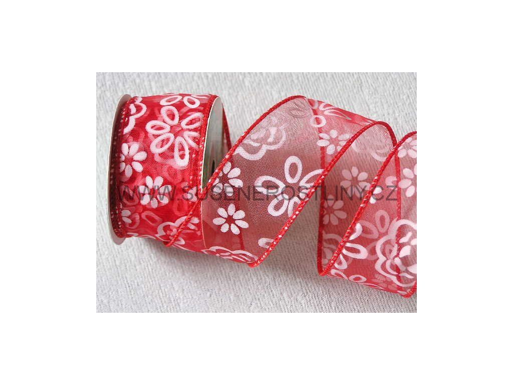 stuha květy 3 červená