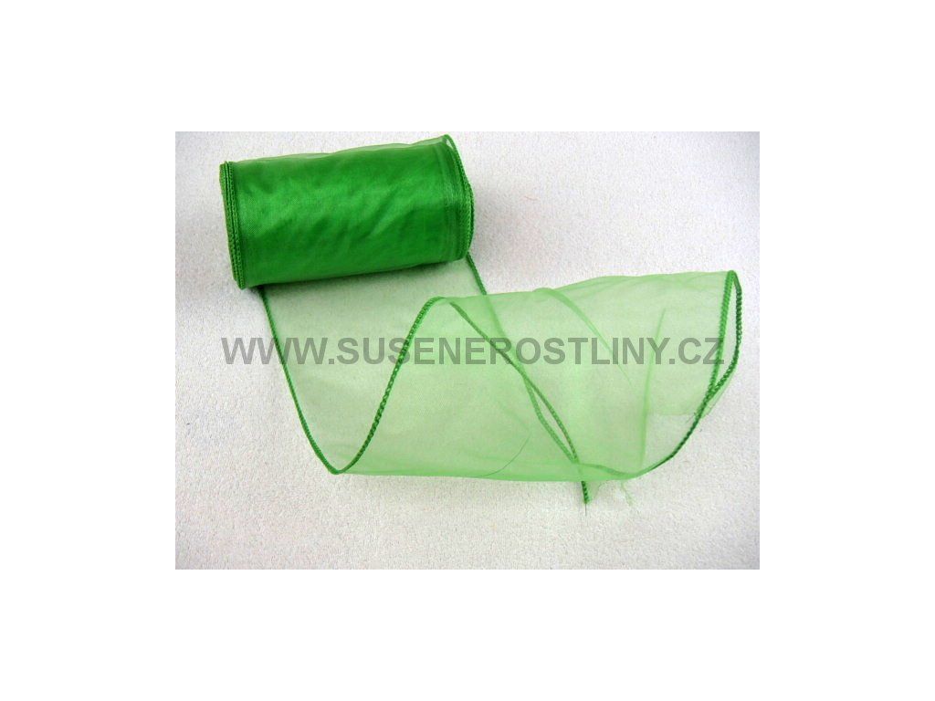 stuha organza zelená trávová S DRÁTKEM 151, 12cmx10 yd