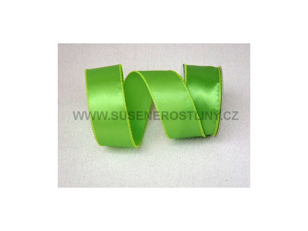 Stuha saténová s drátkem 4 cm x 10 y zelená