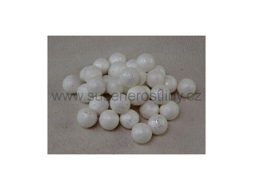 vánoční kulička s glittrem bílá 2,5cm, v balení cca 40ks