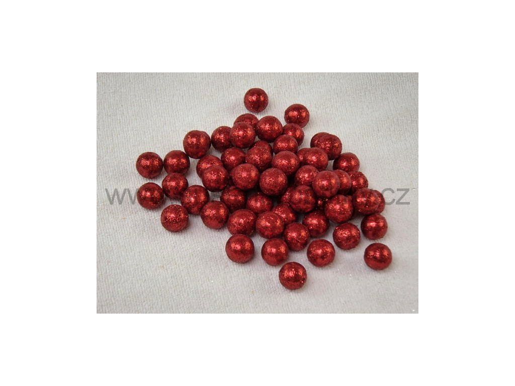vánoční kulička s glittrem červená 1,5cm, v balení cca 200ks