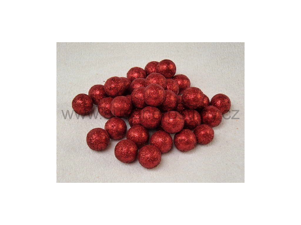 vánoční kulička s glittrem červená 2,5cm, v balení cca 40ks