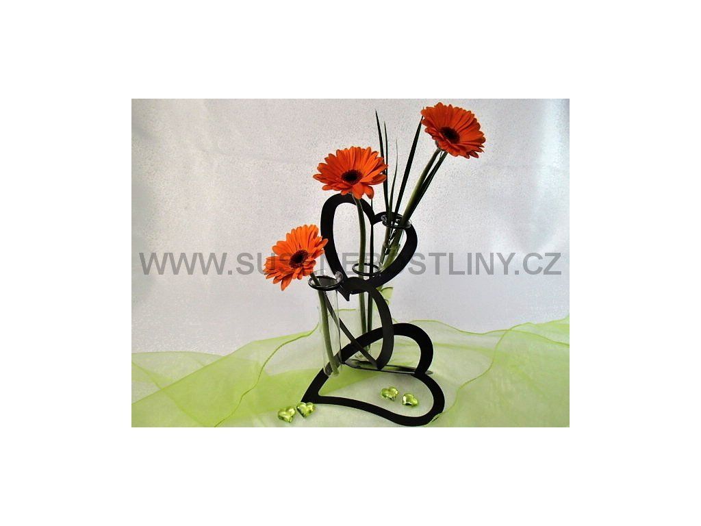 Váza kovová se třemi zkumavkami - srdce, č. 041