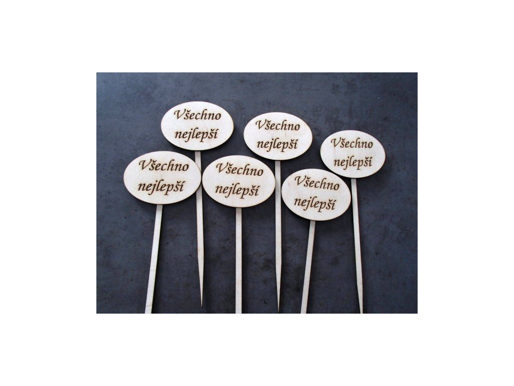 zápich ovál "všechno nejlepší", cena za 6 ks